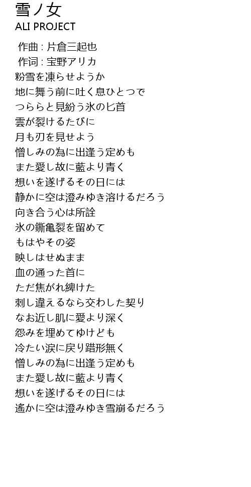 | [04:18.08] | 遙かに空は澄みゆき雪崩るだろう |