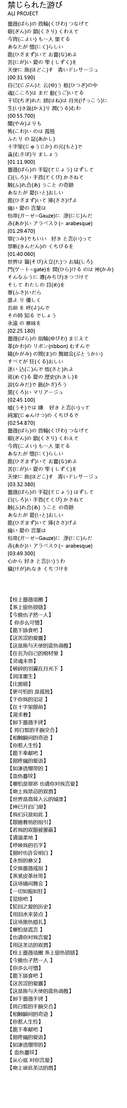 | [03:32.580] | 薔薇(ばら)の 手錠(てじょう) はずして |