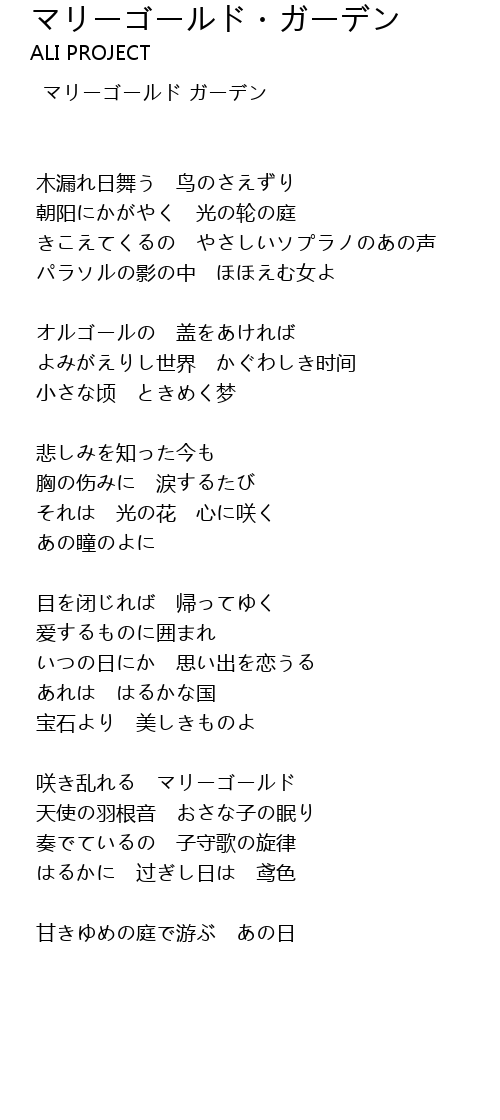 | 歌曲 | マリーゴールド・ガーデン |