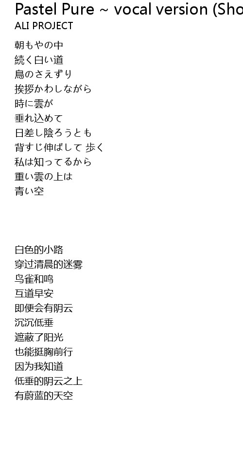 | 歌曲 | Pastel Pure ~ vocal version (Short Mix) |
