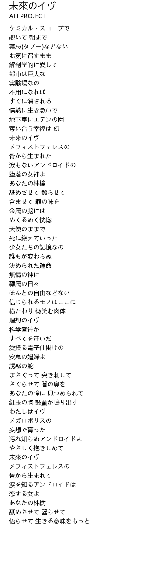 | 歌曲 | 未來のイヴ |
