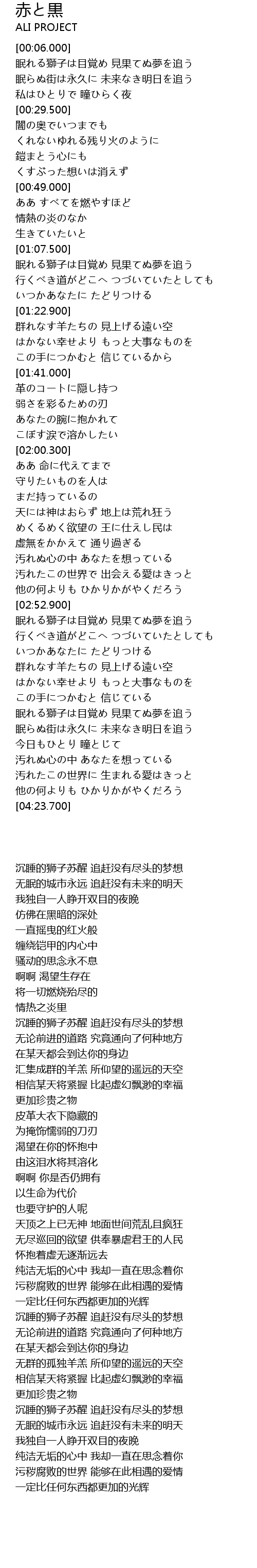 | [03:49.500] | 眠れる獅子は目覚め 見果てぬ夢を追う |