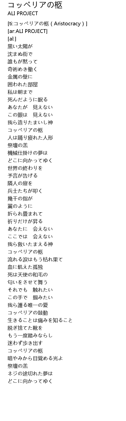 | [ti:コッペリアの柩(Aristocracy)] | |