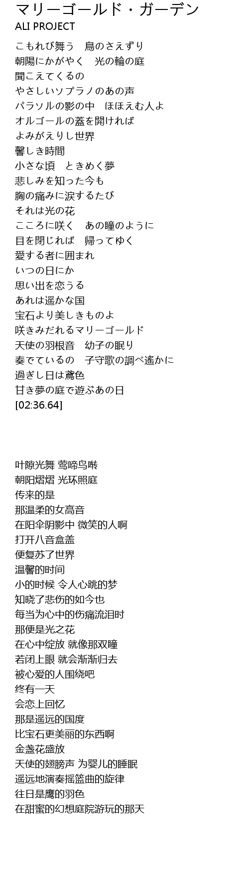 | [02:04.00] | 咲きみだれるマリーゴールド |