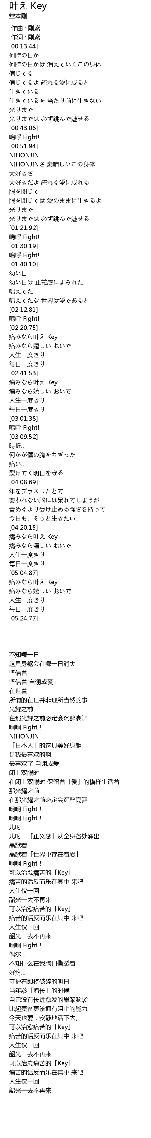 | [05:05.52] | 可以治愈痛苦的「Key」 |