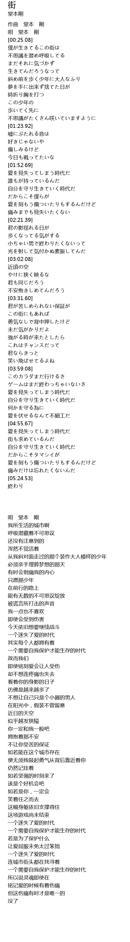 | [00:21.61] | 唄 堂本 剛 |