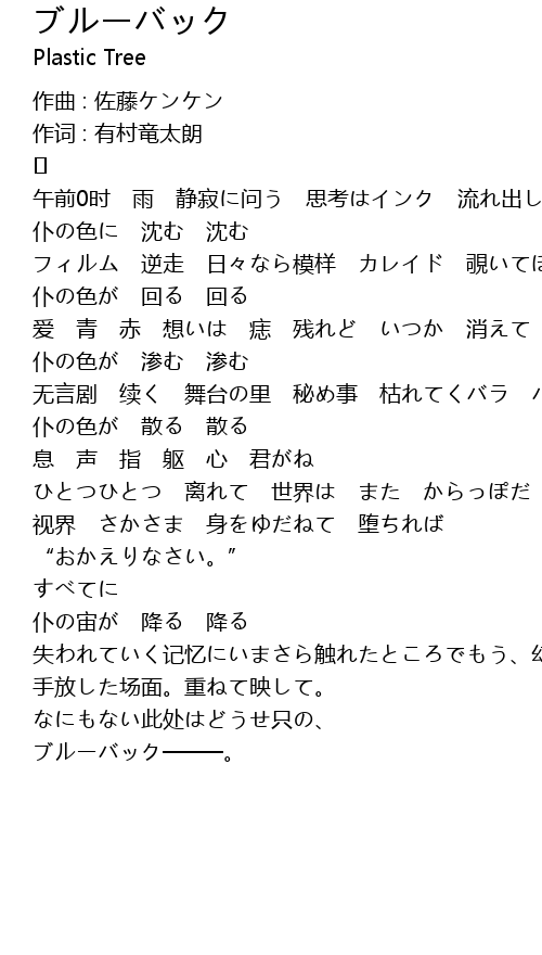 | 爱 青 赤 想いは 痣 残れど いつか 消えて 无くなる | |