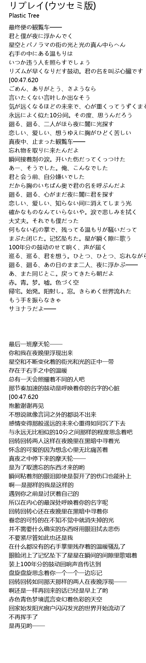 | [00:52.300] | ごめん、ありがとう、さようなら |