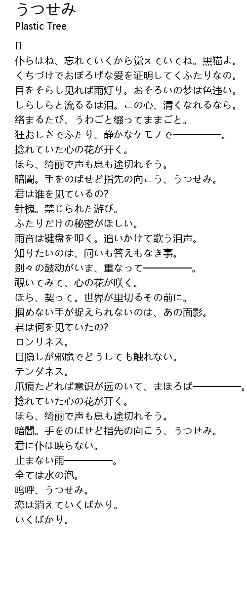 | 歌手 | Plastic Tree |