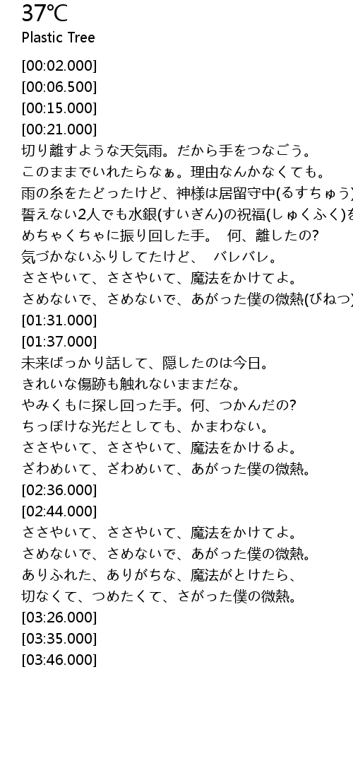 | [03:15.000] | 切なくて、つめたくて、さがった僕の微熱。 |