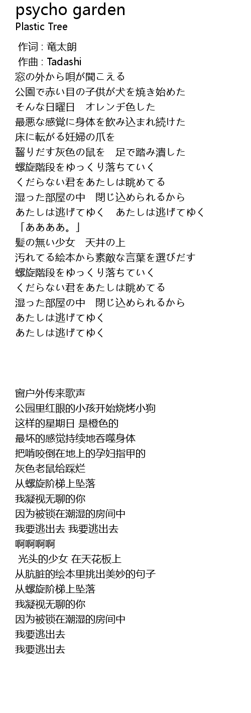 | [03:01.22] | 髪の無い少女 天井の上 |