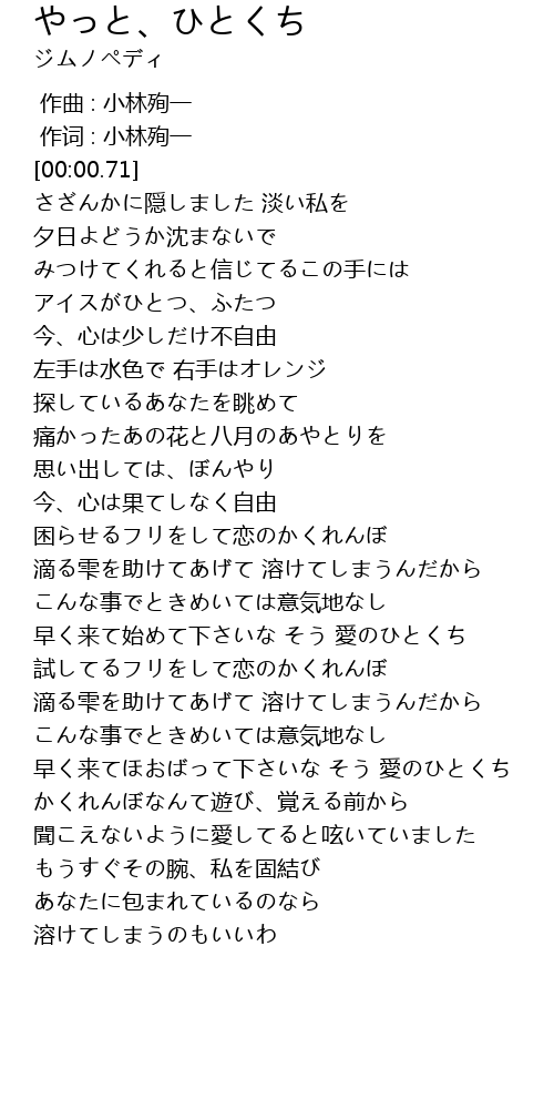 | [00:37.79] | アイスがひとつ、ふたつ |