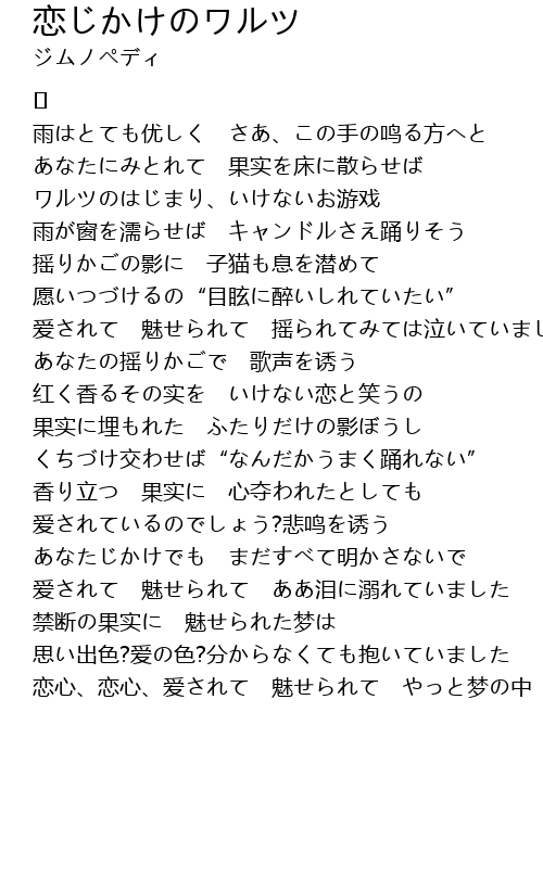 | 恋心、恋心、爱されて 魅せられて やっと梦の中 |