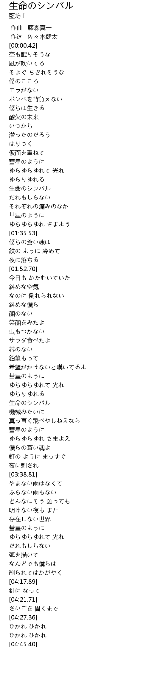 | [02:38.52] | 希望がかけないと嘆いてるよ |
