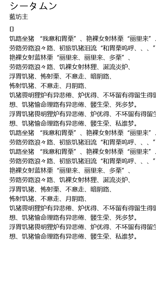 | 劳路劳路浪々路、饥裸女射林狸、涎流炎炉、 | |