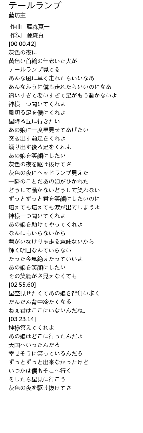 | [00:55.36] | 神様一つ聞いてくれよ |