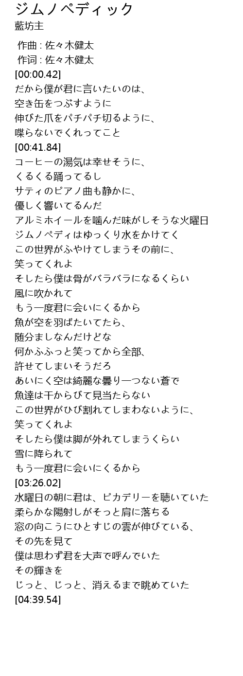 | [00:00.14] | 作词 : 佐々木健太 |