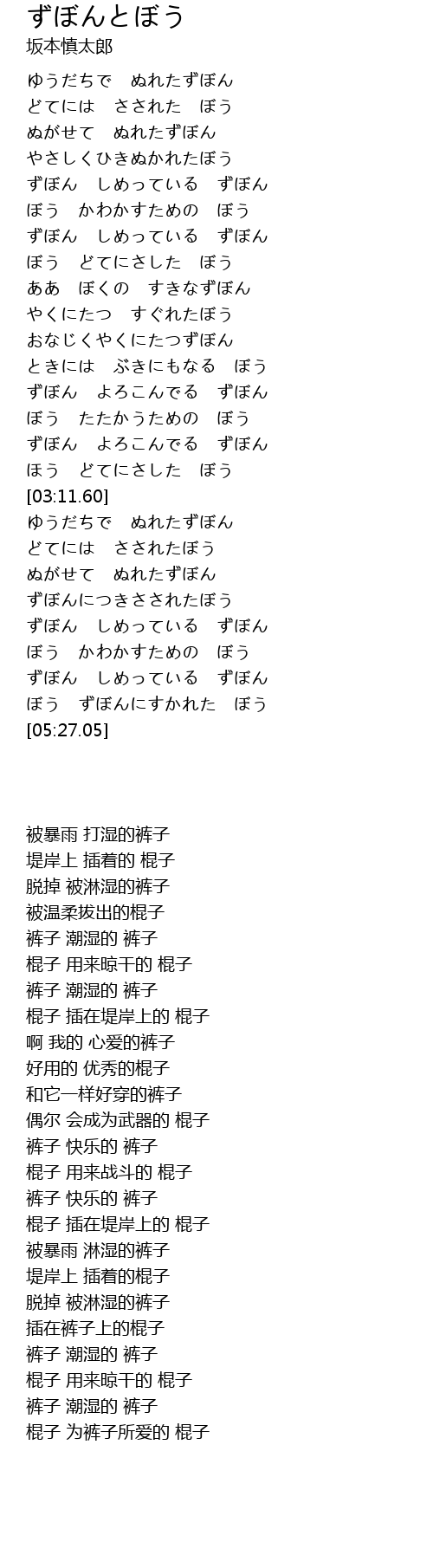 ぼう ずぼんにすかれた ぼう |