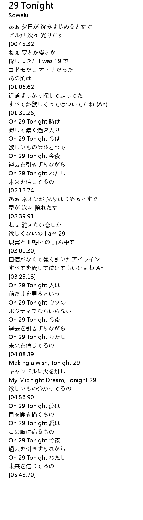 | [04:57.72] | Oh 29 Tonight 夢は |