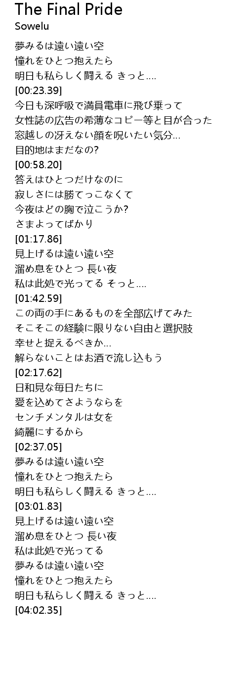 | [03:48.72] | 明日も私らしく闘える きっと…. |