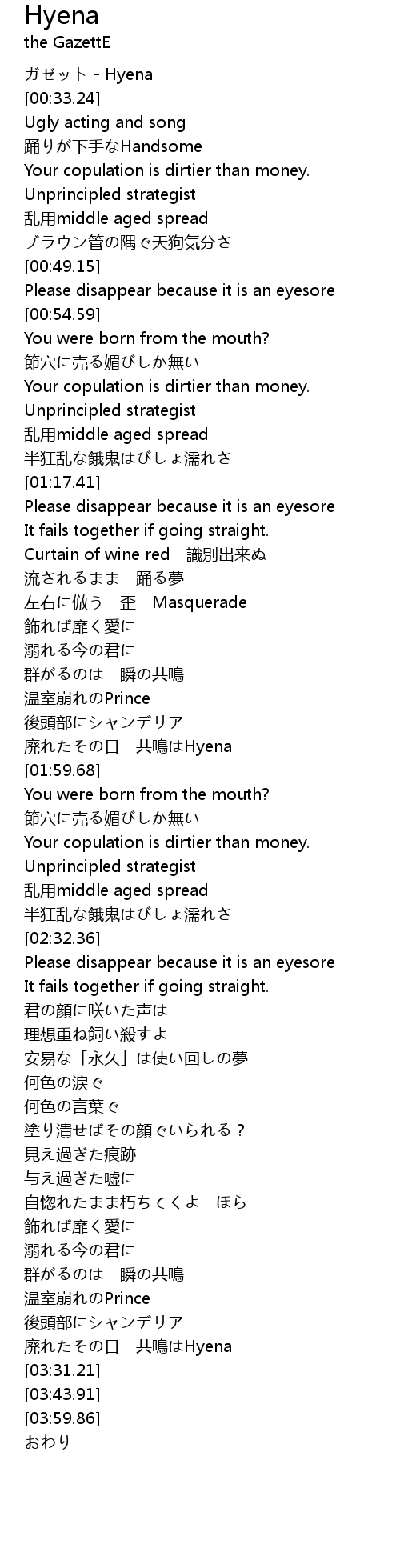 | [01:56.14] | 廃れたその日 共鳴はHyena |