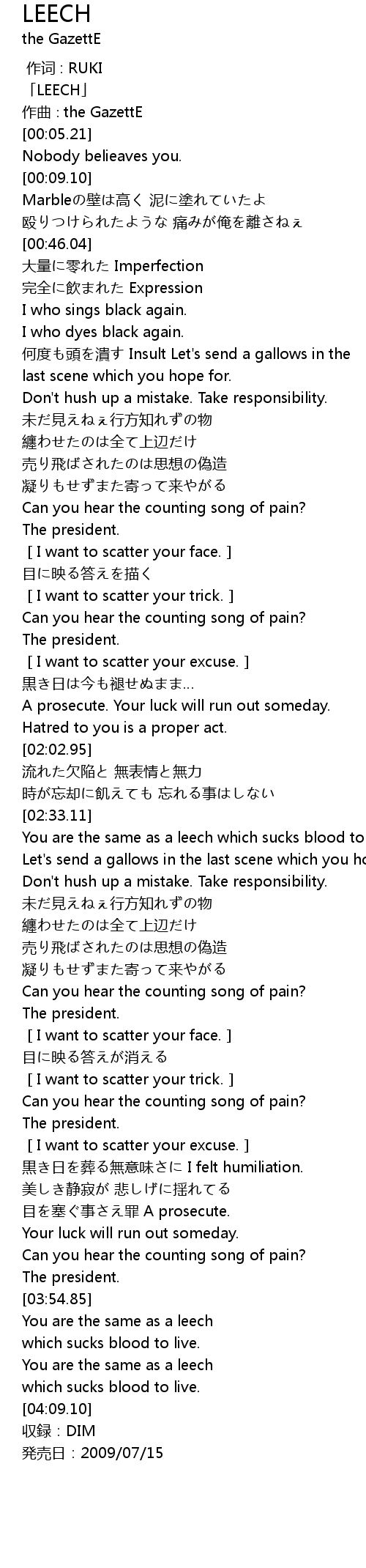 | [02:37.15] | You are the same as a leech which sucks blood to live. |
