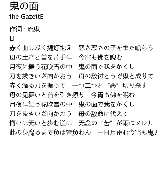 | 歌曲 | 鬼の面 |