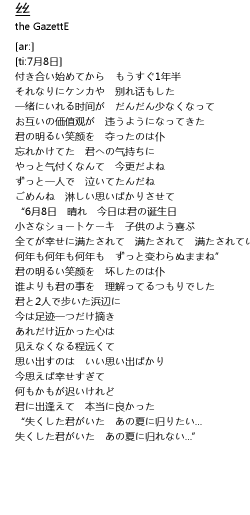 | [02:31.27] | “6月8日 晴れ 今日は君の诞生日 |