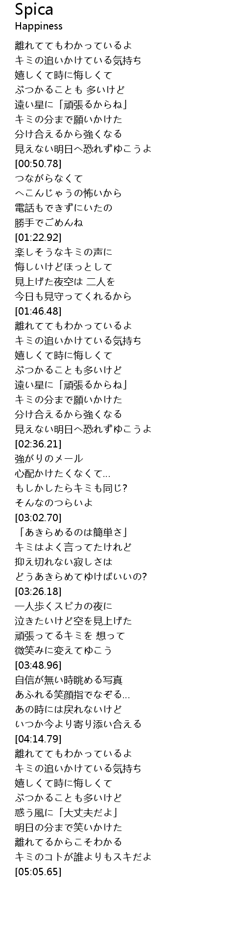 | [03:26.50] | 一人歩くスピカの夜に |