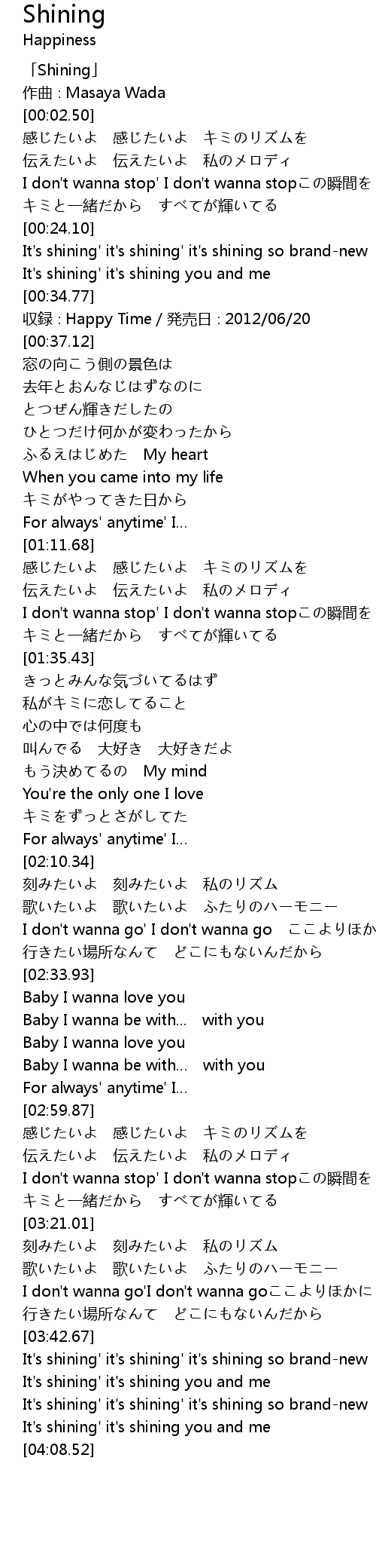 | [00:36.12] | 収録∶Happy Time/発売日∶2012/06/20 |