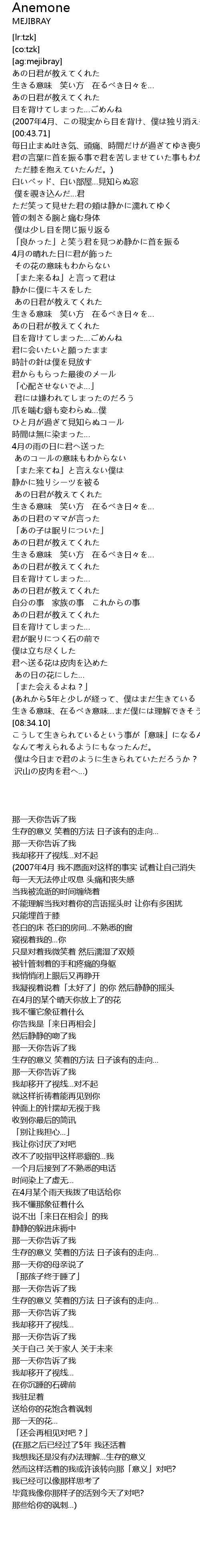 | [06:48.93] | 生存的意义 笑着的方法 日子该有的走向... |