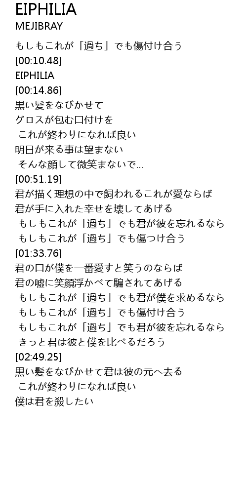 | [02:10.31] | もしもこれが「過ち」でも君が僕を求めるなら |