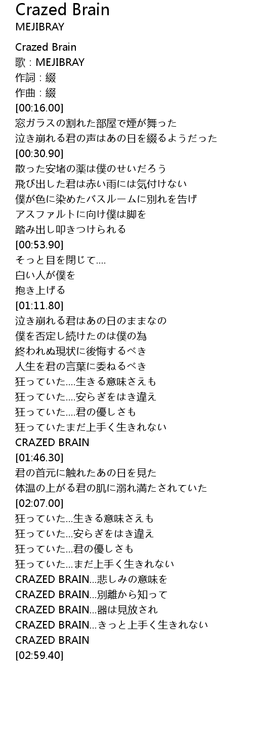 | [02:43.05] | CRAZED BRAIN...別離から知って |