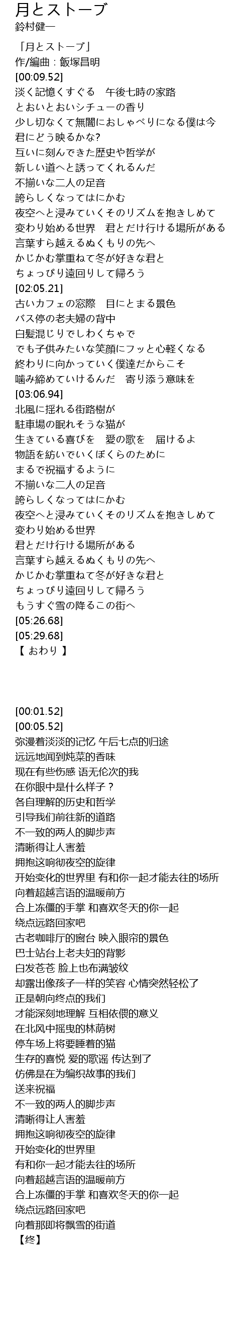 | [00:01.52] | 「月とストーブ」 |