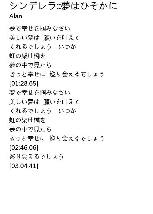 | [02:03.32] | 美しい夢は 願いを叶えて |