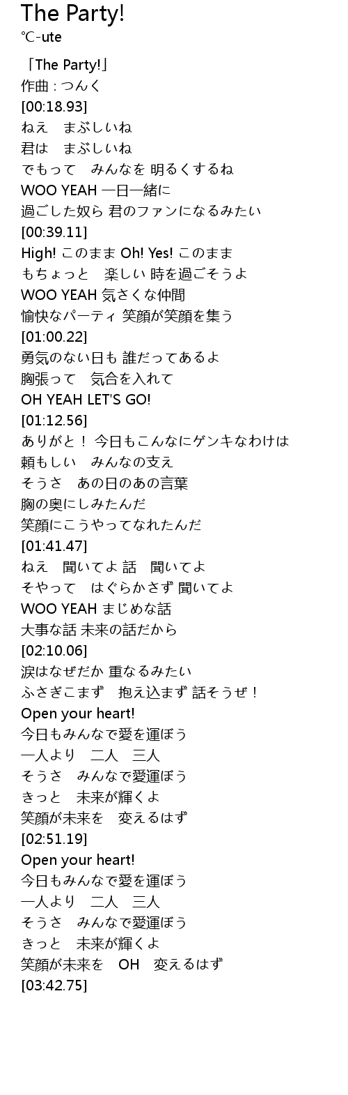 | [00:54.29] | 愉快なパーティ 笑顔が笑顔を集う |