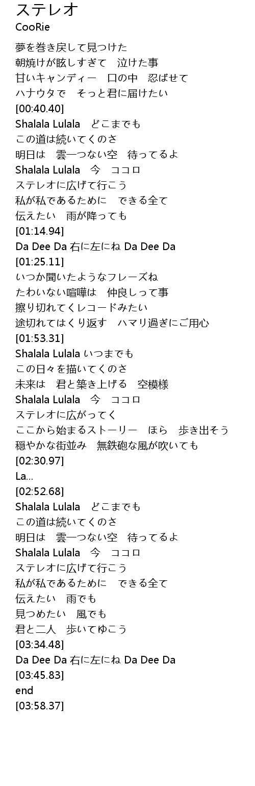 | [03:36.69] | Da Dee Da 右に左にね Da Dee Da |
