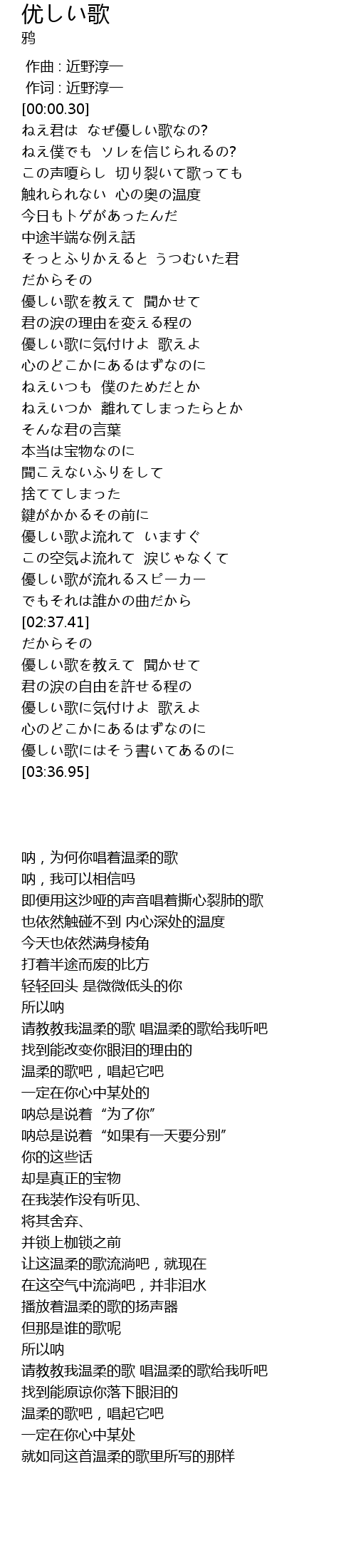 | [00:00.67] | ねえ君は なぜ優しい歌なの? |