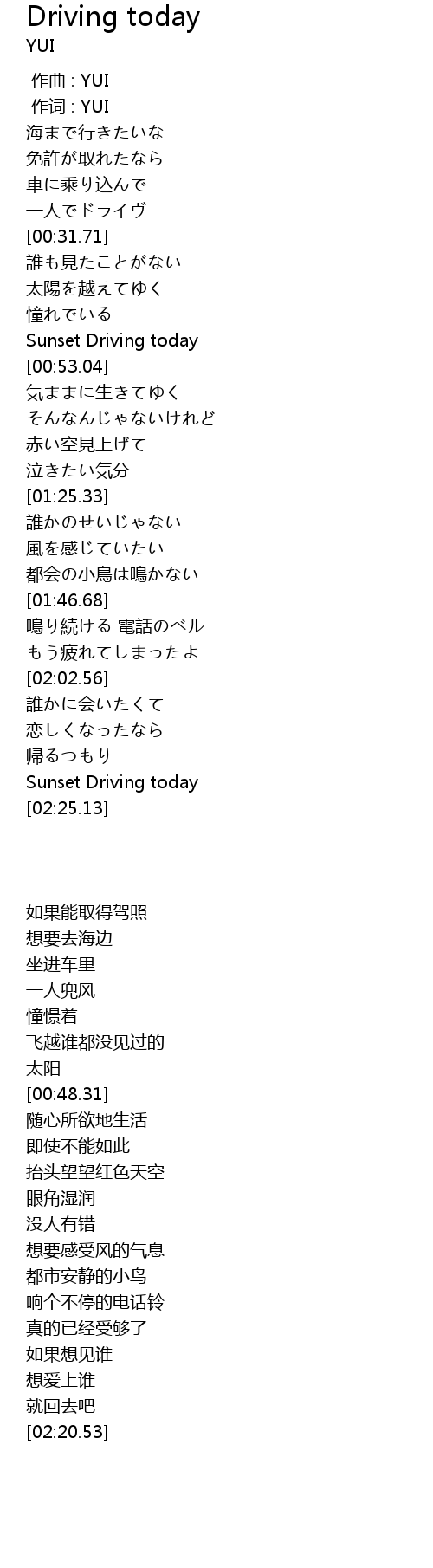 作词 : YUI |