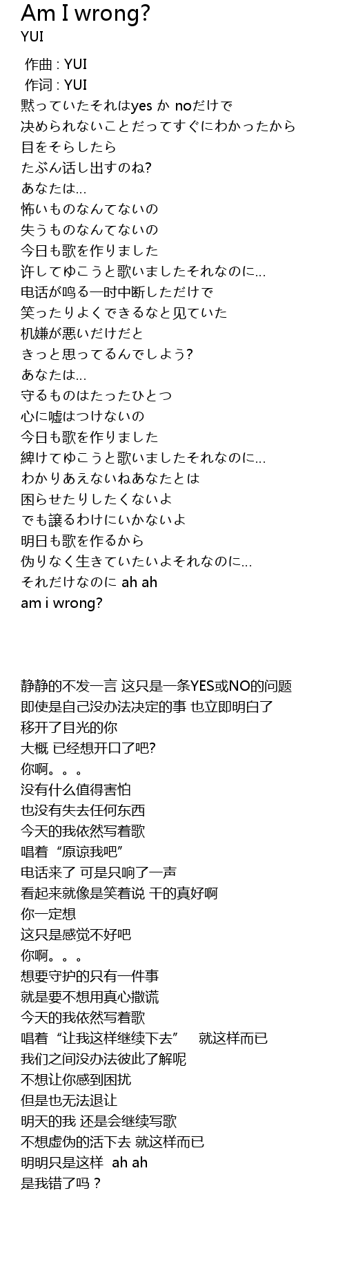 | [00:18.575] | 静静的不发一言 这只是一条YES或NO的问题 |