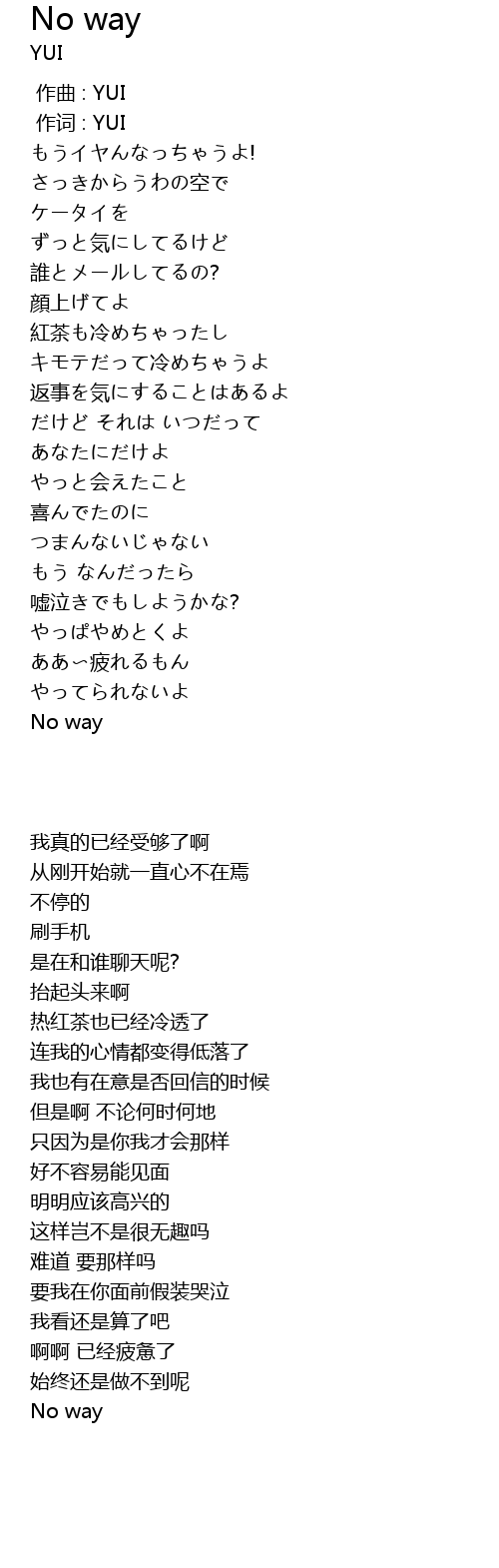 作词 : YUI |
