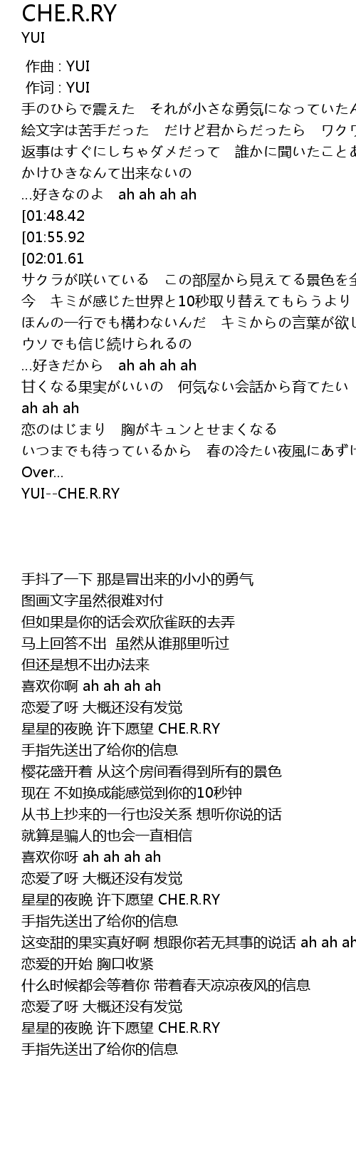 | [01:55.92] | 星星的夜晚 许下愿望 CHE.R.RY |
