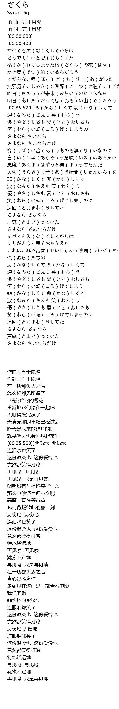 | [00:35.520]] | 悲(かな)しくて 悲(かな)しくて |