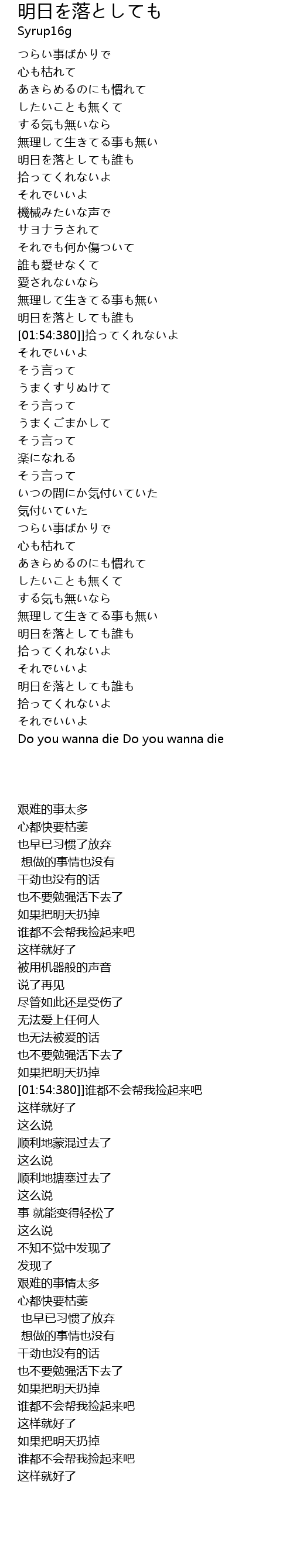 | [03:16:000] | 明日を落としても誰も |