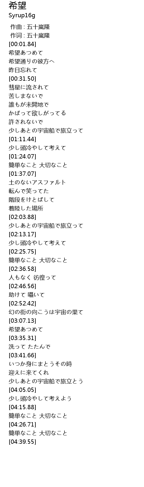 | [03:55.19] | 少しあとの宇宙船で旅立とう |