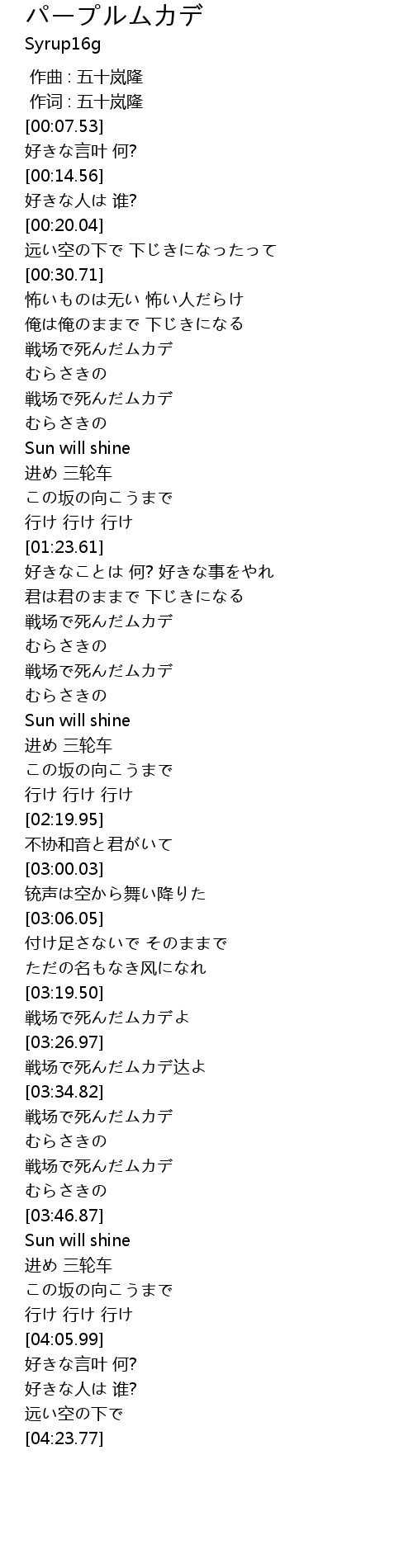 | [03:29.31] | 戦场で死んだムカデ达よ |