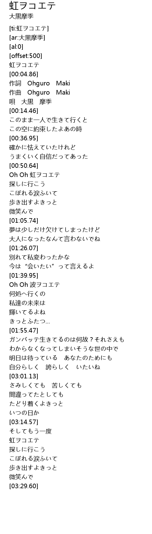作詞 Ohguro Maki |