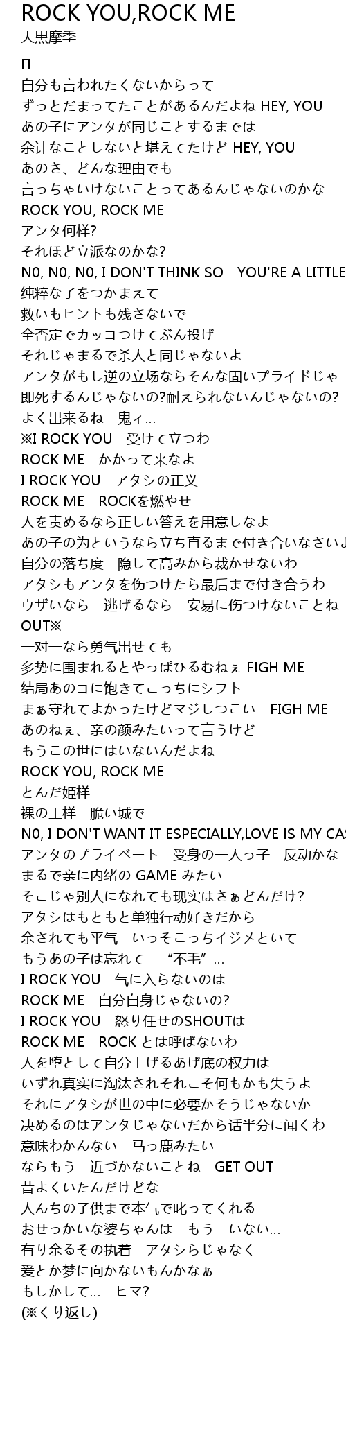 | I ROCK YOU 怒り任せのSHOUTは | |
