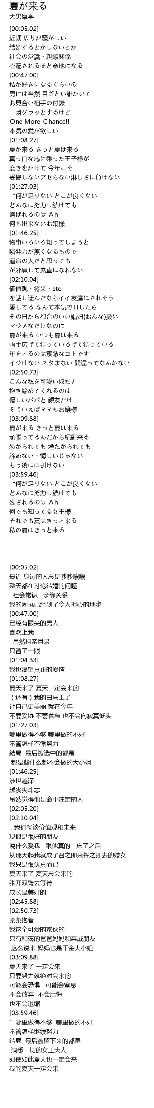 | [02:32.42] | 夏天来了 夏天总会来的 |