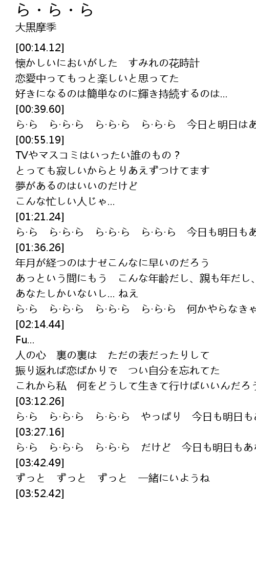 | [00:41.42] | ら·ら ら·ら·ら ら·ら·ら ら·ら·ら 今日と明日はあなたに逢えない |